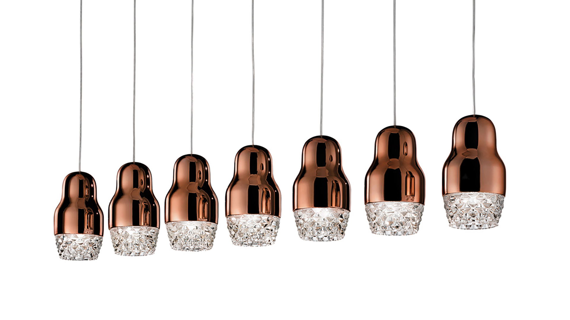 Sinuous and graceful as a matryoshka doll/Russian doll, Fedora, single or multiple, expresses its personality in configurations of great scenography. Contemporary and tradition are combined in its luminous harmony.
