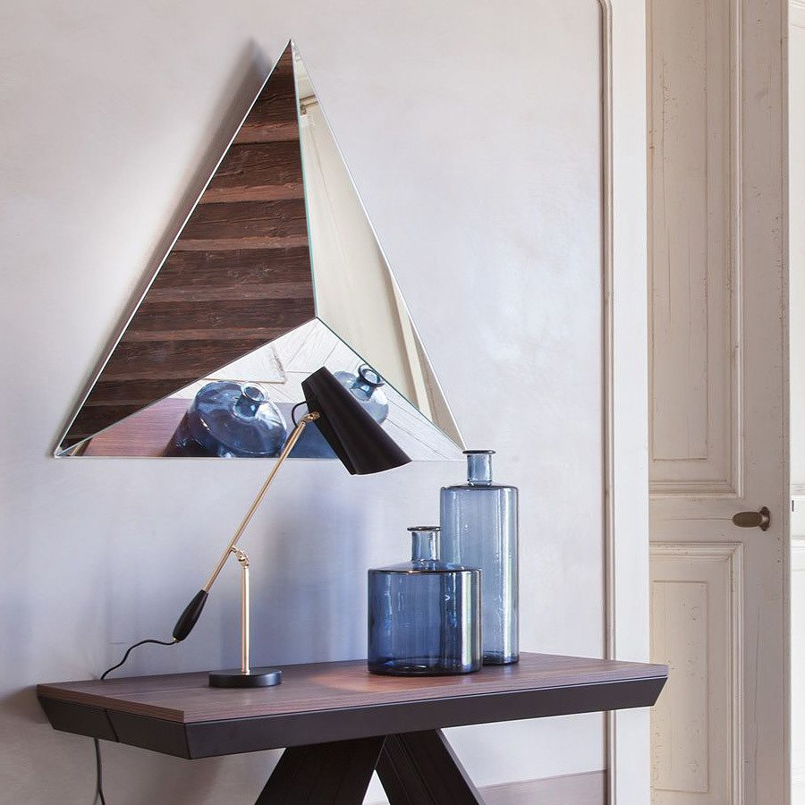 This mirror is technically referred to as “skewed”, but it definitely is much more than this: its peculiar structure can actually duplicate the images reflected on it, and hence magnify the room in which it is hung. Only the silver mirror version is available, precisely to enhance its tridimensional shape, and to better refract light.