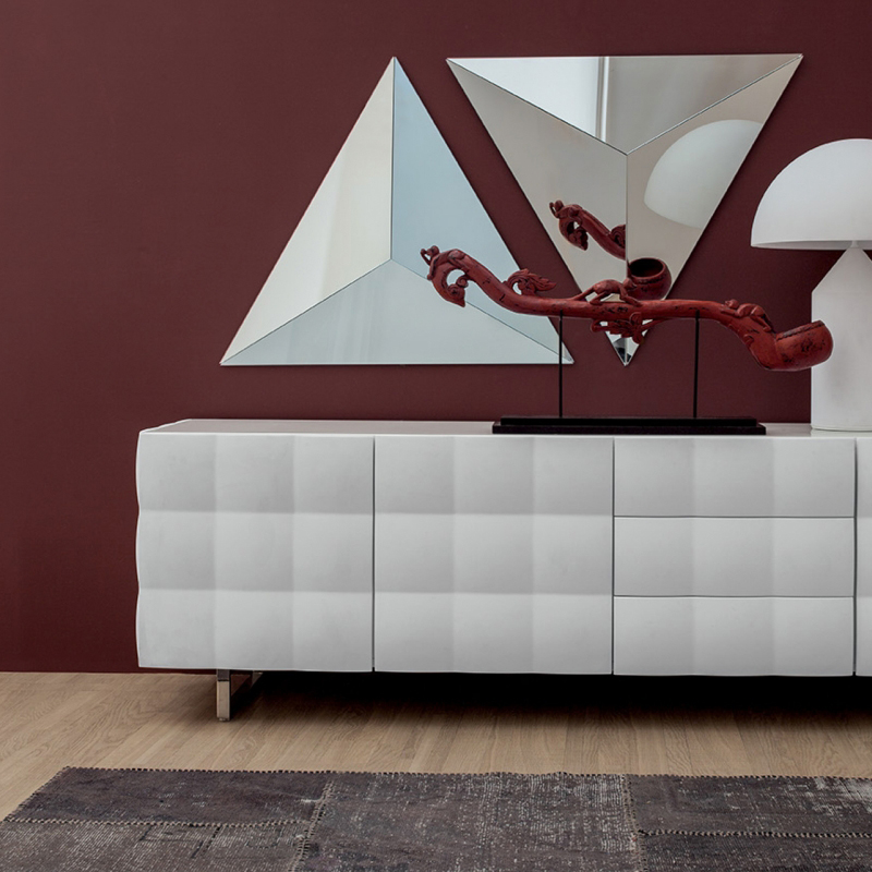 Soon after graduating in Economy, Claudio Lovadina starts being attracted by art. After working for an industrial design company, he goes through various managerial experience, realizing a line of products in collaboration with important artists. He then feels the need to express himself by creating painting-sculptures, monochromatic and minimalistic pieces, born from a streak that becomes volume. Lovadina starts working in the interior design field in 2004, designing elegant and minimalistic furniture. His collaboration with Tonin Casa worked perfectly so far, and keeps being innovative. Its latest example is the new Alicante mirror, simple, precious, functional.