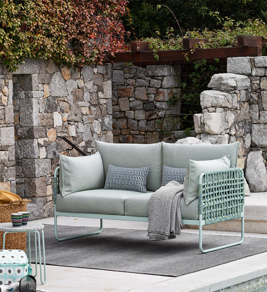 The Yo! sofas are synonymous with elegance. They have removable covers and a tubular-metal frame which has been treated and coated for outdoor use. The backrests and armrests on the metal frame have been entirely made in a flat weave reinforced with polypropylene. The seat cushions rest on a slatted base reinforced with polypropylene. Yo! has been upholstered in polyurethane foam protected by a waterproof PVC lining and covered in water-repellent Sunbrella® fabric. The fabric gives special protection against UV sunlight and is fade-resistant, as well as having mouldproof and stainproof properties. Do you want a sumptuously comfortable sofa? Choose Sunny footstools and optional Sunny cushions with fully removable covers.