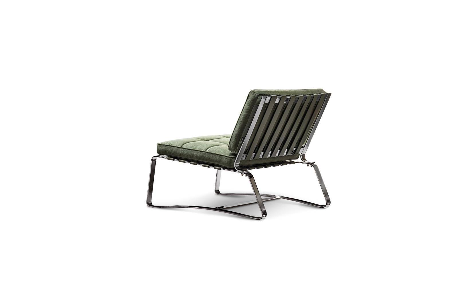 It is proposed again with new colours and sartorial details. “Quilt” stitching has been added to the seat, while the saddle hide straps on the seat and back come in a range of original shades: Ash Grey, Dove Grey, Sage and Burgundy.