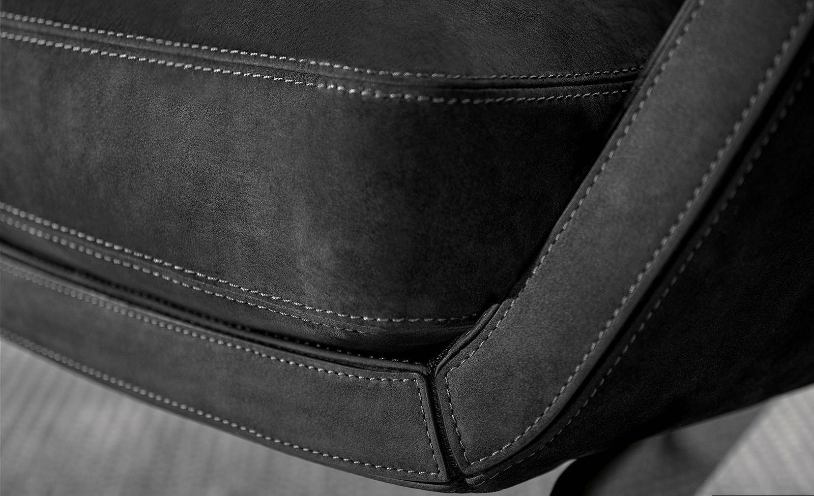 In particular, in the leather version, the strip is sewn onto a piece of bonded leather to lend support and ensure a consistent thickness: it is applied to the covering as a belt is applied to a dress and an ultra-sophisticated crafting process is required to follow the curved shape of the seat and keep the visible seams perfectly straight and even.