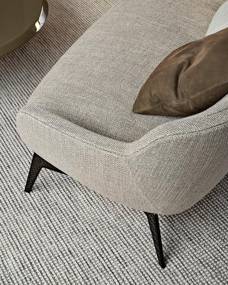 The distinctive characteristic and inspiration behind the Belt family, designed in the all-fabric or leather versions, is the idea of a belt that draws the profile of the body, encircling it, then breaking off and fastening on the front of the seat.