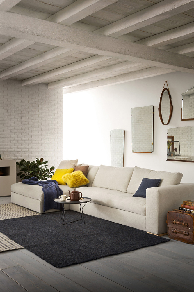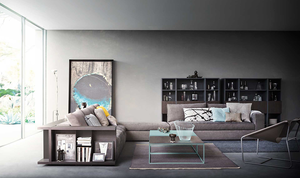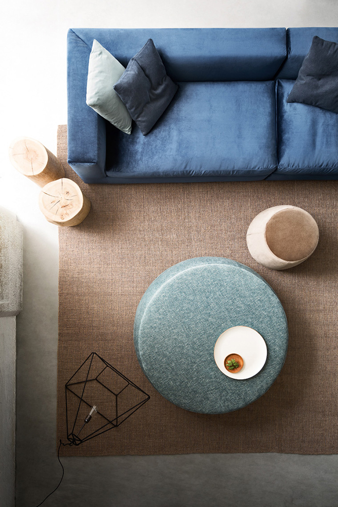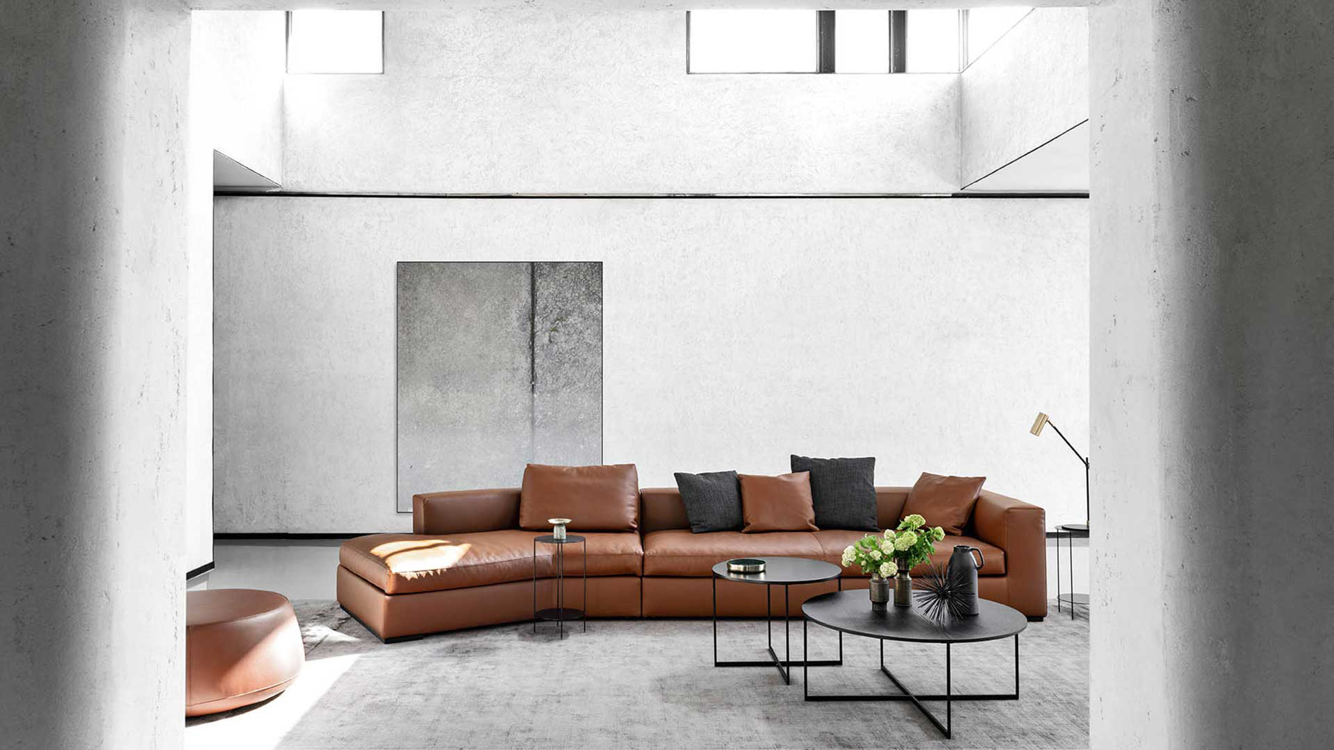 The CALIFORNIA sofa features lounge end units and modules that go beyond the idea of square right angles. They create convivial seating arrangements suitable for a less schematic and formal idea of a living room that is more open and welcoming.