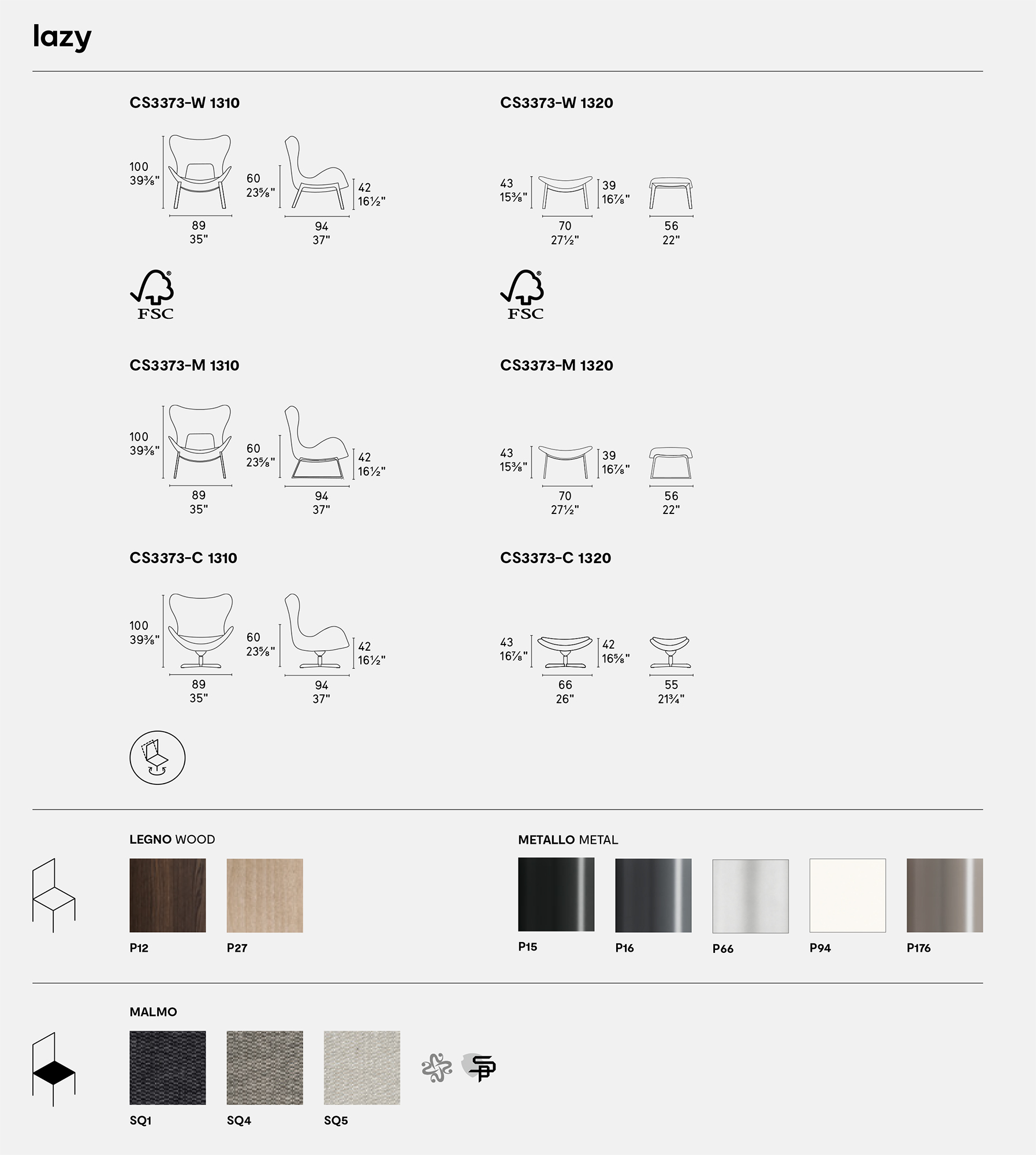 Lazy can easily fit in the living areas, in the bedrooms as bedroom armchair and in the environments of the contract sector.