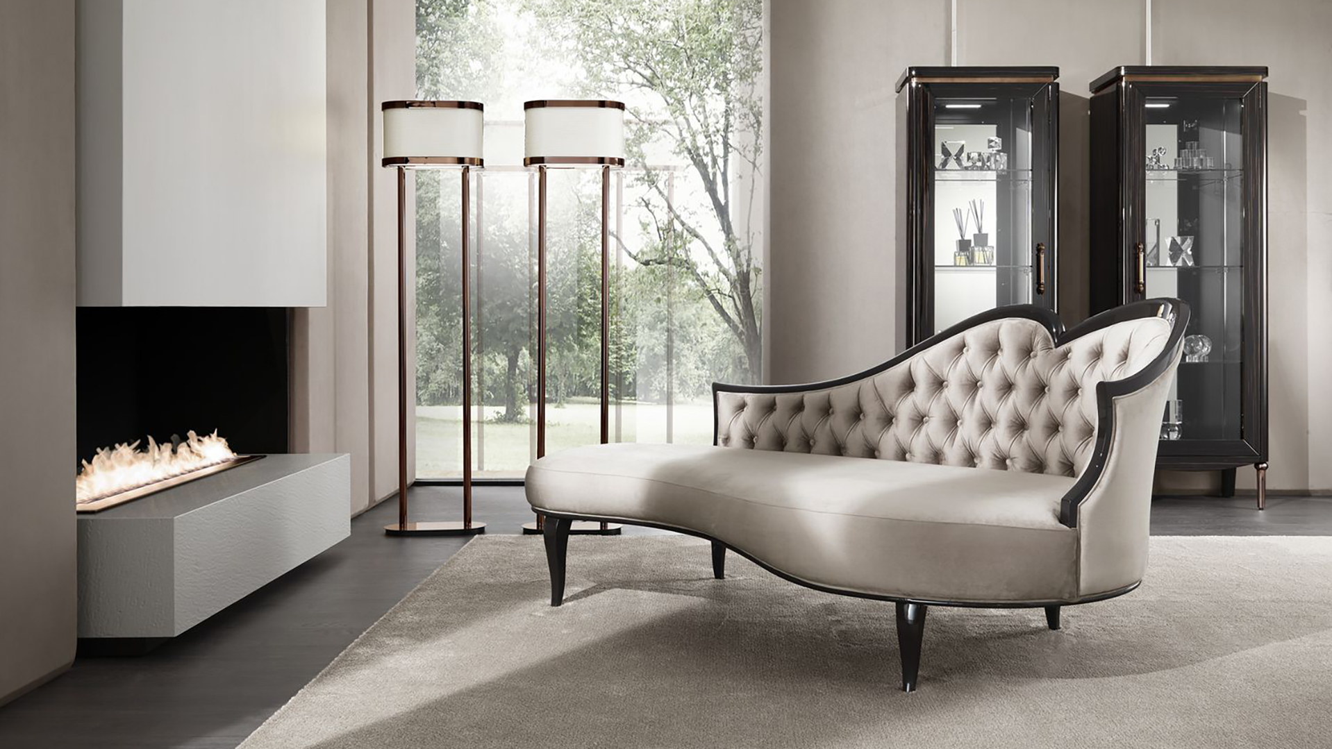 Գործարանային Rene շեզլոնգը հիանալի այլընտրանք կլինի բազմոցին գործադիր տարածքում: Այն հագեցած է ասիմետրիկ հենակով, որի վերին եզրը կարծես թե գծված է համարձակ, վստահ գծով։ Բոլոր եզրային գծերի երկայնքով շեզլոնգը շրջապատված է պատկերավոր շրջանակով: Նստատեղը նույնպես ասիմետրիկ է։ Կառուցվածքն ապահովված է չորս կաբրիոլ ոտքերով, որոնք ներկված են շրջանակի գույնին համապատասխան: