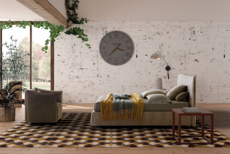 Զանգվածային փափուկ հիմք-կոնտեյներով մահճակալ, որի նրբագեղ կողային ոտնակողմը ընդգծված է օրիգինալ ուռուցիք զիգզագ կարով և այդպիսով ստեղծում է անսովոր գլխակալի հիանալի պրոֆիլ՝ դիզայնի և երկրաչափական հարաբերակցության իդեալական համադրությամբ: