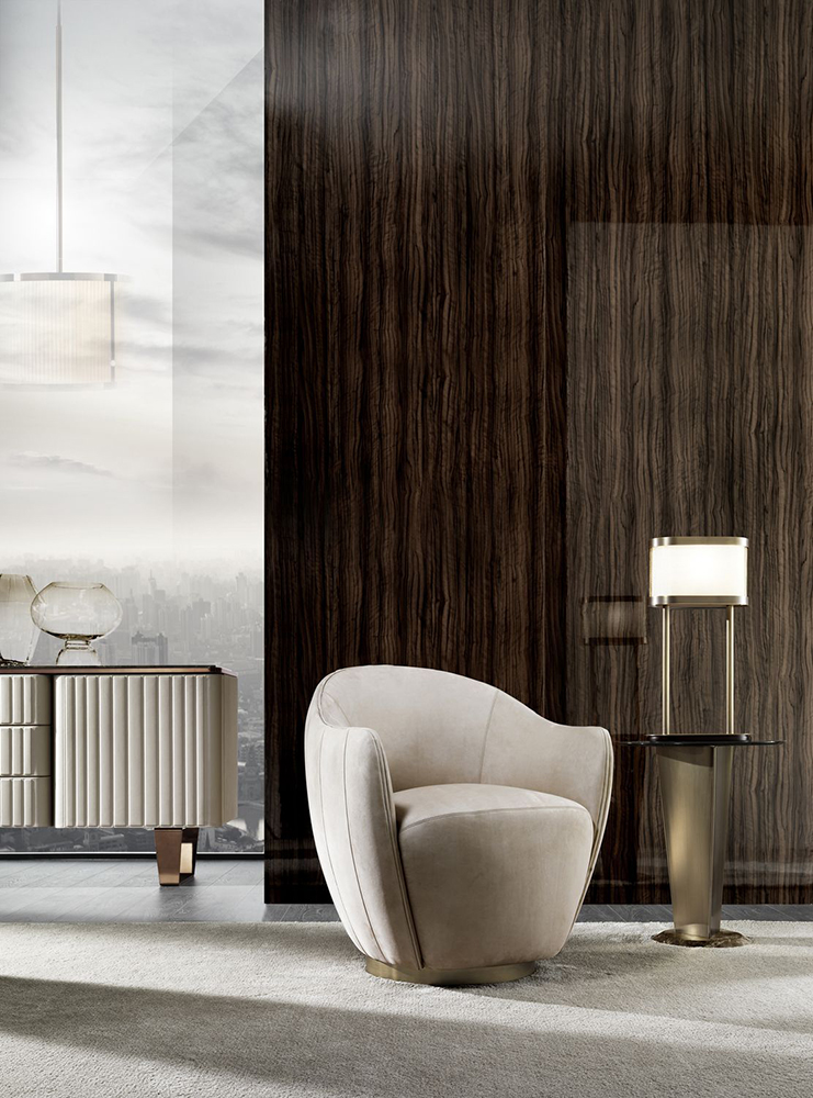 Очаровательное кресло-ракушка представлено в линейке Hermes. Корпус из массива дерева установлен на круглом основании, изготовленном из стали с позолоченным покрытием. Мягкость сиденья и спинки достигается благодаря упругому и формостойкому полиуретану различной жесткости. Спинка имеет эргономичный изгиб, позволяющий полностью расслабиться при посадке. Снаружи элемент украшен вертикальной прошивкой. Обивка кресла выполняется из ткани разных оттенков – на выбор. Элегантное, симпатичное кресло подойдет для небольшой гостиной или спальни в стиле ар-деко или модерн.