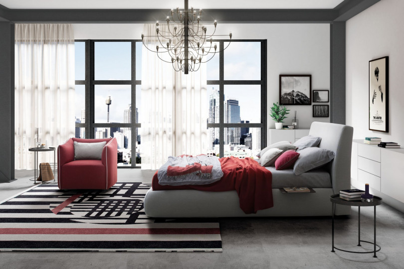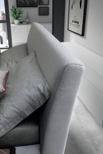 Кровать, которая умеет нарушать правила, налагаемые жесткой структурной геометрией, где линия становится кривой, а последняя уступает место наличию ровного шва. Современная фактура обивочной ткани придает модели единую элегантность.