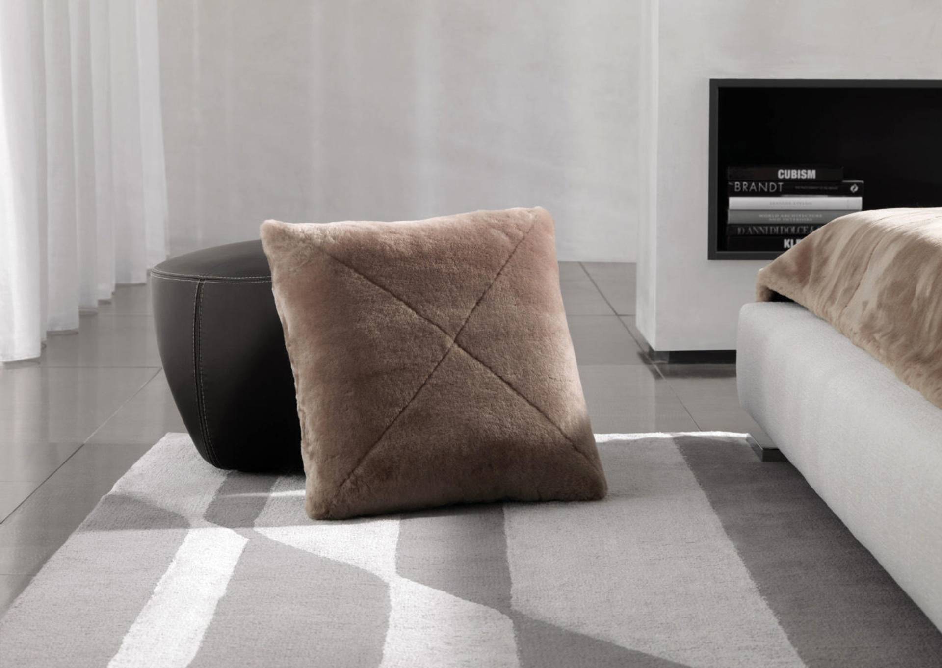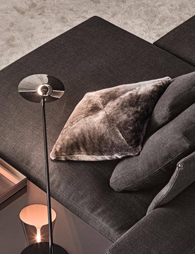 Подушка Shearling доступна в бежевом, коричневом, зеленом и графитовом цветах и придает изысканную теплоту и элегантность любому элементу сидения из коллекции Minotti.