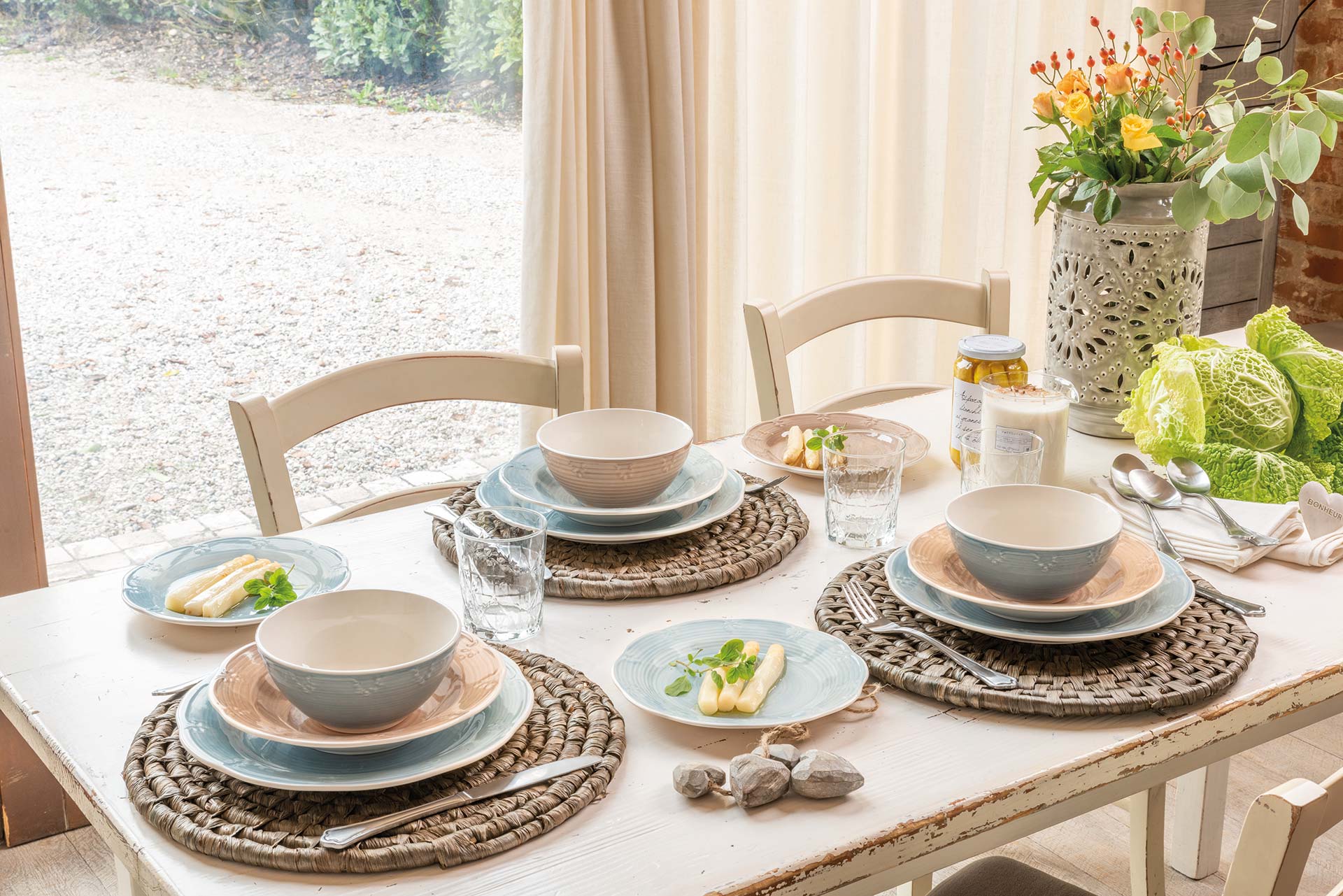 Посуда коллекции Shabby Azzurro изготовлена в прованском настроении с рельефными украшениями и с элегантными расписанными вручную нюансами.